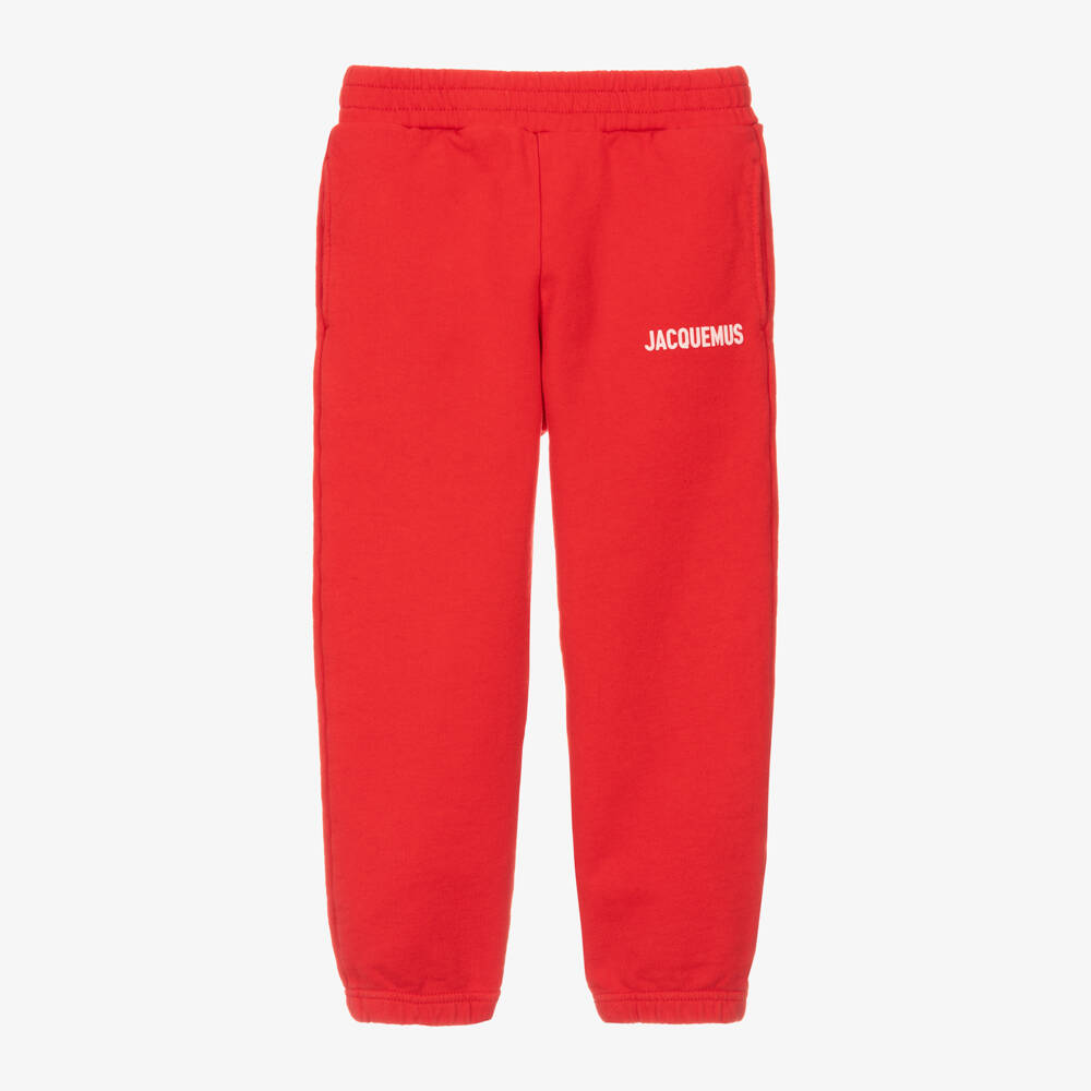 Boys and girls can relax in style in these red cotton joggers from French brand, Jacquemus Enfant. Created using a special manufacturing process for unique character and authentic style, they are made in comfortable, mid-weight jersey. An elasticated waistband and cuffed ankles complete the relaxed look. They are designed with practical concealed side pockets and have a white logo print on the front for a signature designer finish.