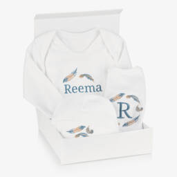 A babygrow set for girls from Jamiks, in white. Silky, soft and stretchy, all three pieces are made in bamboo viscose with a lovely pink floral pattern. The babygrow has a convenient front zip for quick dressing, the hat has an adorable knotted top and the blanket is useful for keeping baby snug and comfortable.
