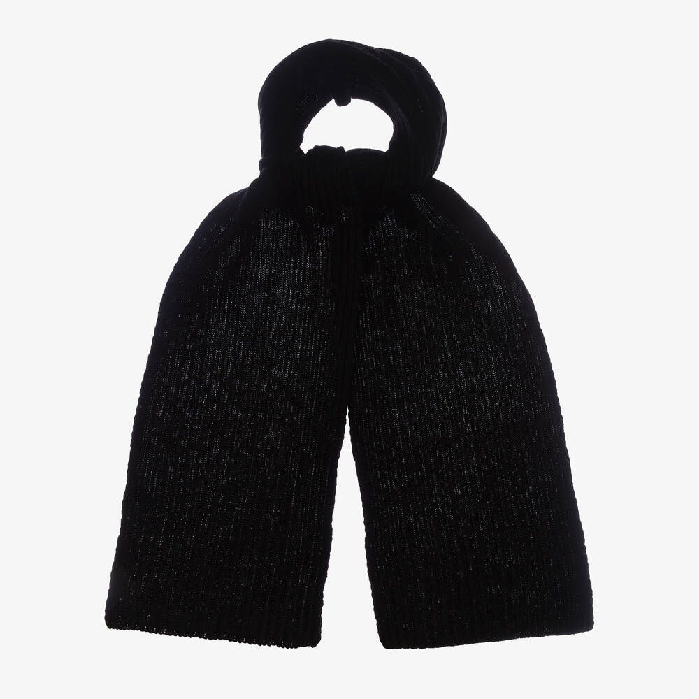 Black ribbed scarf for boys and girls from Jamiks, made in a soft blend of wool and viscose with a touch of luxurious cashmere. Softly knitted, this warm accessory is ideal for those colder months.