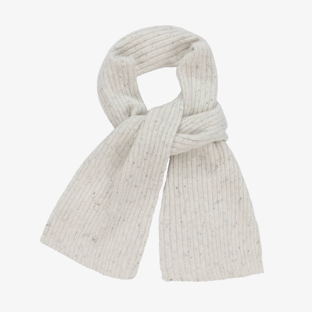 Ribbed scarf for boys from Jamiks, in pale grey with a black flecked pattern. Softly knitted, this accessory will keep him cosy thanks to its chunky, wool-blend fabric.