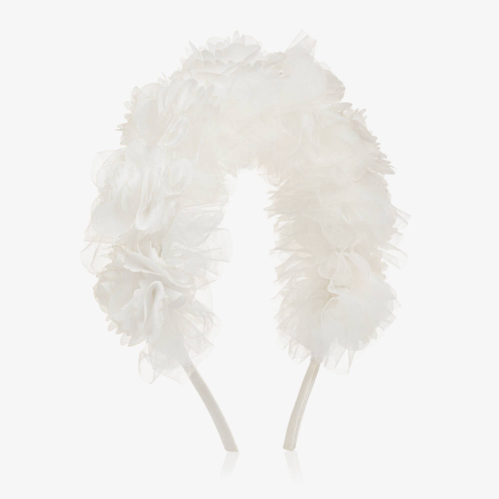 Girls White Tulle & Floral Hairband