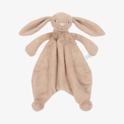 An adorable doudou for baby girls by Jellycat, in light beige. In the shape of a friendly bunny rabbit, it is made in velvet-feel plush and designed with padded paws for baby to chew. Made with recycled materials, Bashful Bunny has a sweet embroidered face and adorable floppy ears.