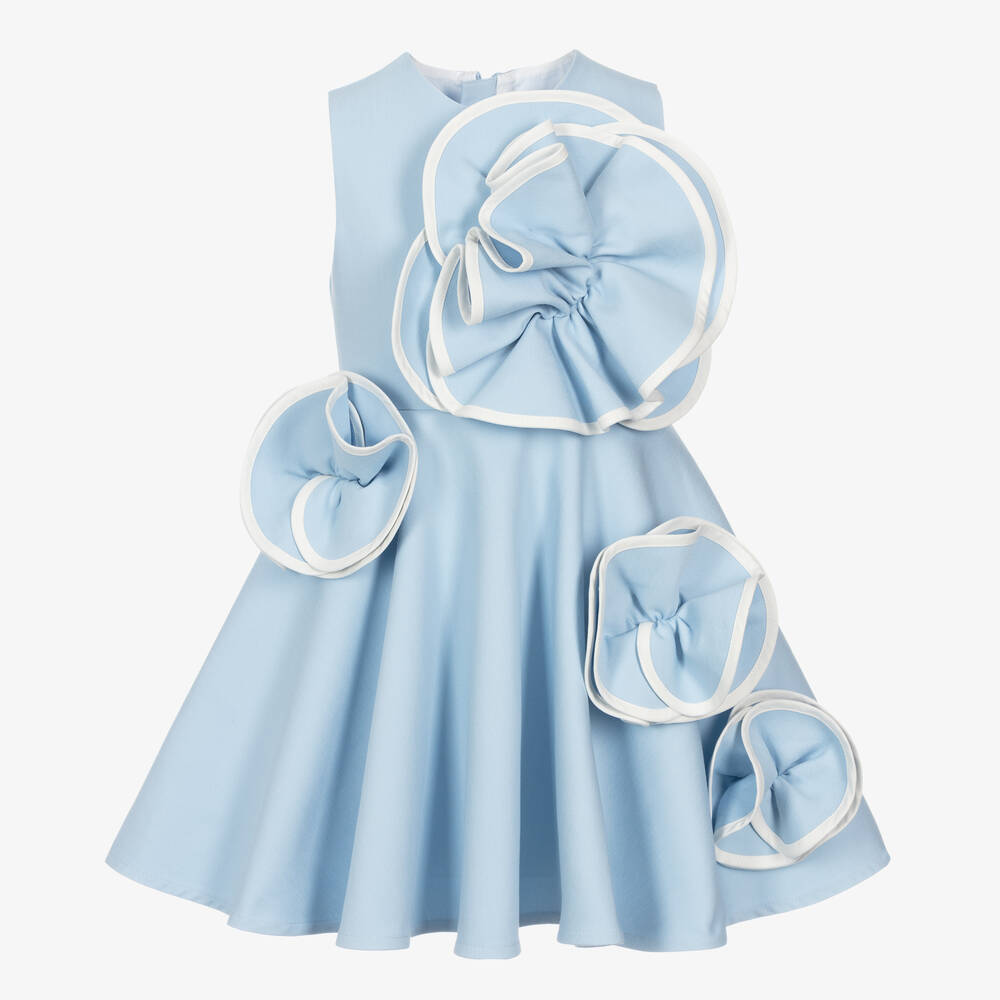 Girls Blue 3D Flower Cotton Dress