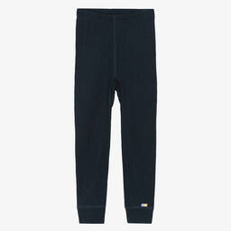 Grey thermal leggings for boys and girls by Joha, made in super soft and stretchy ribbed Merino wool. These comfortable leggings can be used for layering when the weather gets colder or can be worn alone. The waistband and cuffs are both gently elasticated and the brand's colourful striped logo tab features on one leg.