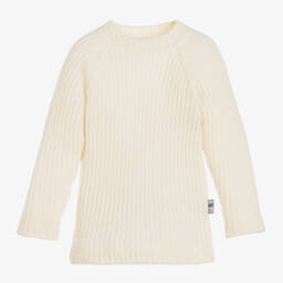 An ivory ribbed thermal sweater for little boys and girls by Joha, made in a beautifully soft and stretchy Merino wool knit. Great for layering, it can be used as a base layer or as a cosy sweater. Designed to naturally regulate body temperature, this comfortable top has a rounded neckline and stretchy ribbed trims.