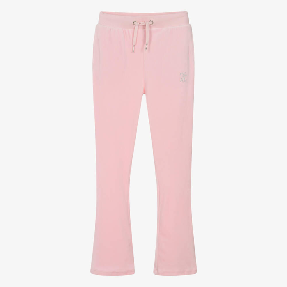 Juicy Couture design these pale pink flared joggers for teen girls, made in the brand's iconic velour. Synonymous with the label, this loungewear-inspired style have a diamanté logo appliqué on one leg for a glamorous look. Combining style and comfort, they have a stretchy, drawstring waistband.
