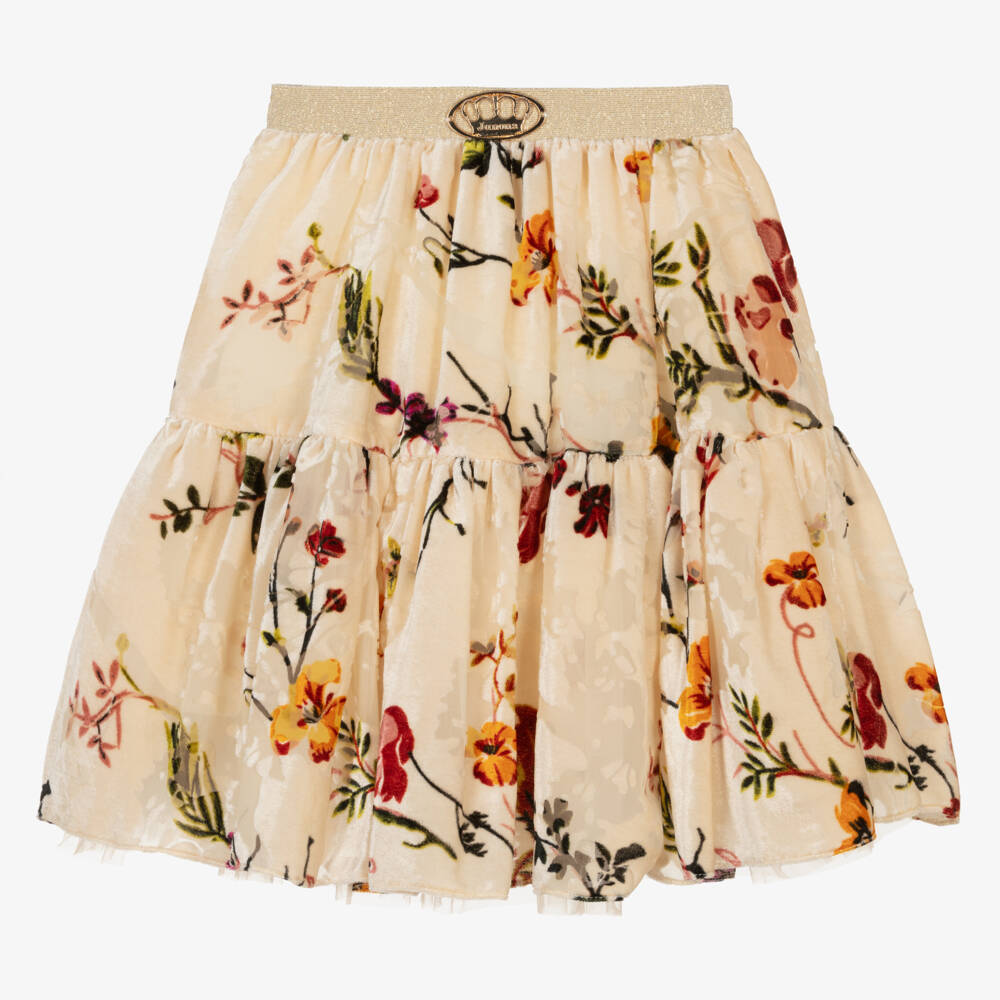 Girls Ivory Floral Devoré Velvet Skirt