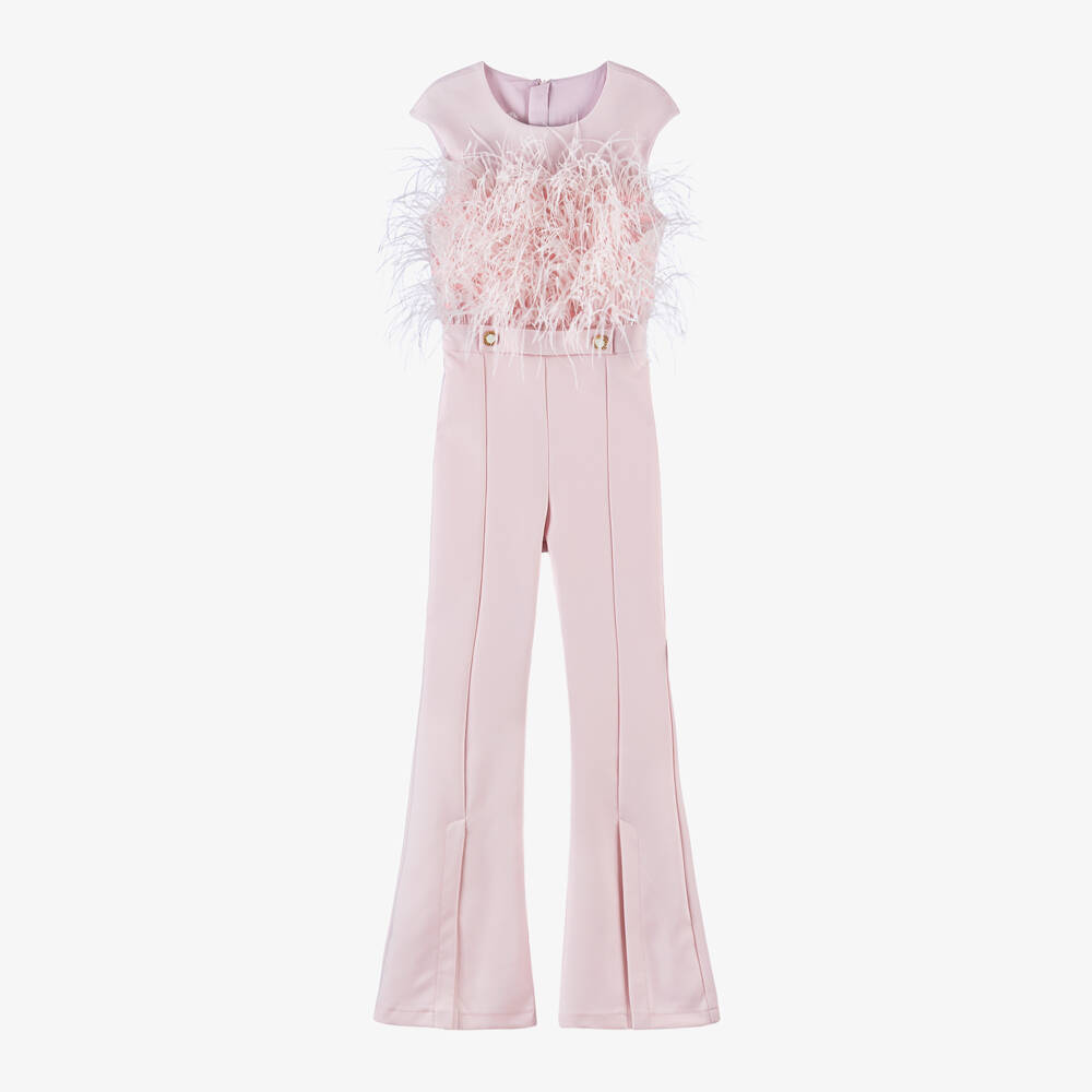 Girls Pale Pink Feather Jumpsuit