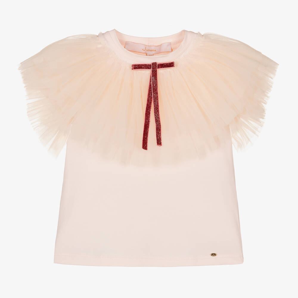 Girls Pink Cotton & Tulle T-Shirt