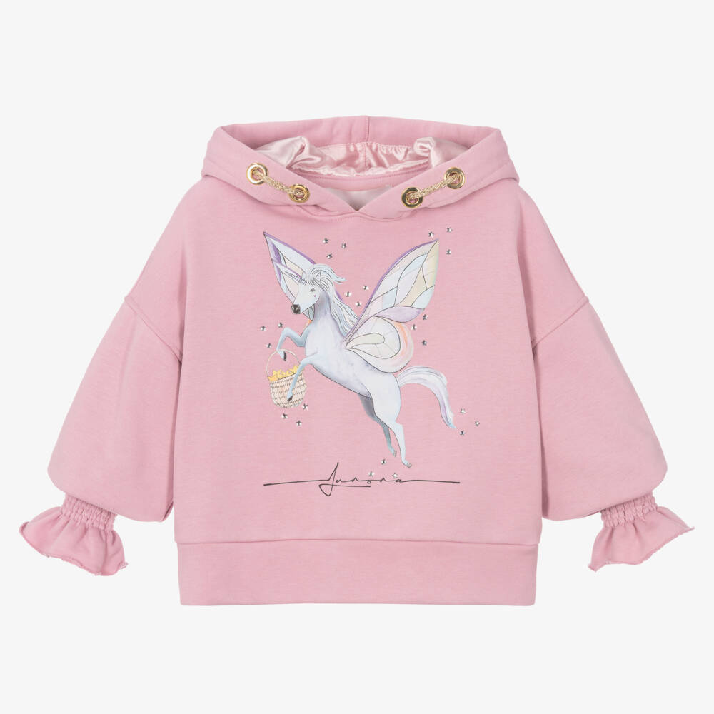 Girls Pink Cotton Unicorn Hoodie