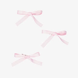A set of three, pink satin bow hair clips for girls by Junona, exclusive to Childrensalon. Ideal for adding a delicate finishing touch to both special occasion and casual looks, each bow sits on a metal crocodile clip, ensuring a secure fit in the hair. Lovely as a gift, they come beautifully presented in a branded box.