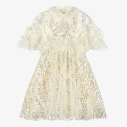 A stunning red dress for girls by Junona, with a silky satin bodice. Sure to make a statement, this eye-catching dress has three-dimensional red tulle roses on the bodice with a gold, heart-shaped charm on the waistline. It has a large, removable bow on the back which secures with easy popper fastenings. The layered skirt is fully lined for comfort and is designed with structured crinoline trims for an elegant shape. Layers of tulle underneath add extra volume and the dress fastens neatly with a concealed zip on the back.