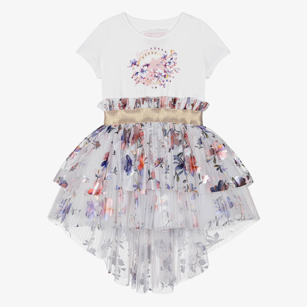 Girls White Floral Tulle Dress