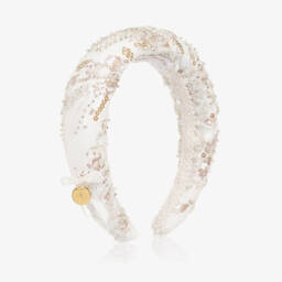 Girls White Satin & Crystal Bead Hairband