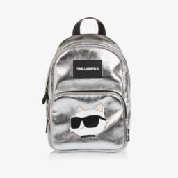 Mini-me black backpack for boys by KARL LAGERFELD KIDS, with a silky, logo branded lining. The spacious main compartment has an internal slip pocket and closes with a zip across the top and clips on webbing straps at the sides. There is a large external zipped pocket on the front with a rubberised white Karl Ikonik logo. The back and adjustable shoulder straps are padded for comfort and there is a useful carry handle on the top.