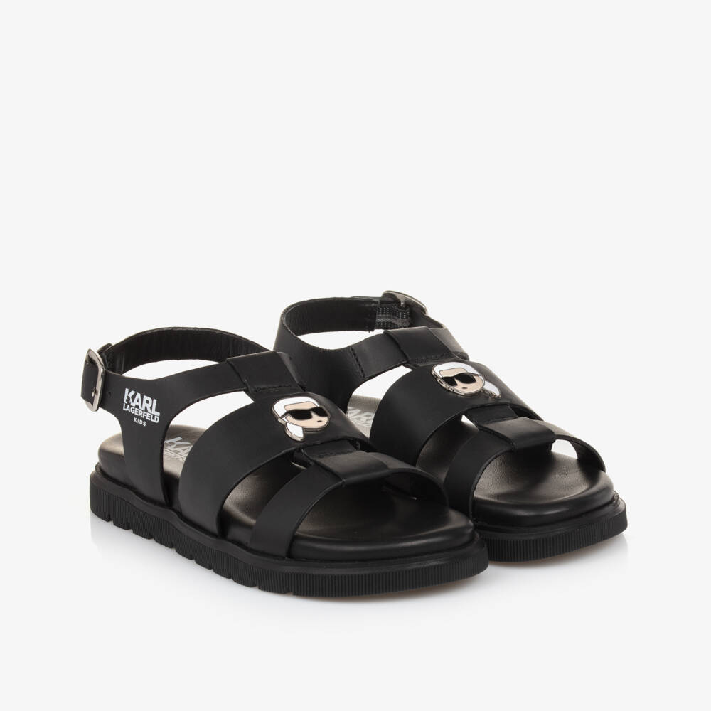 Girls Black Leather Karl Sandals