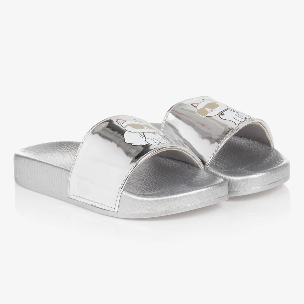 Girls Silver Choupette Sliders