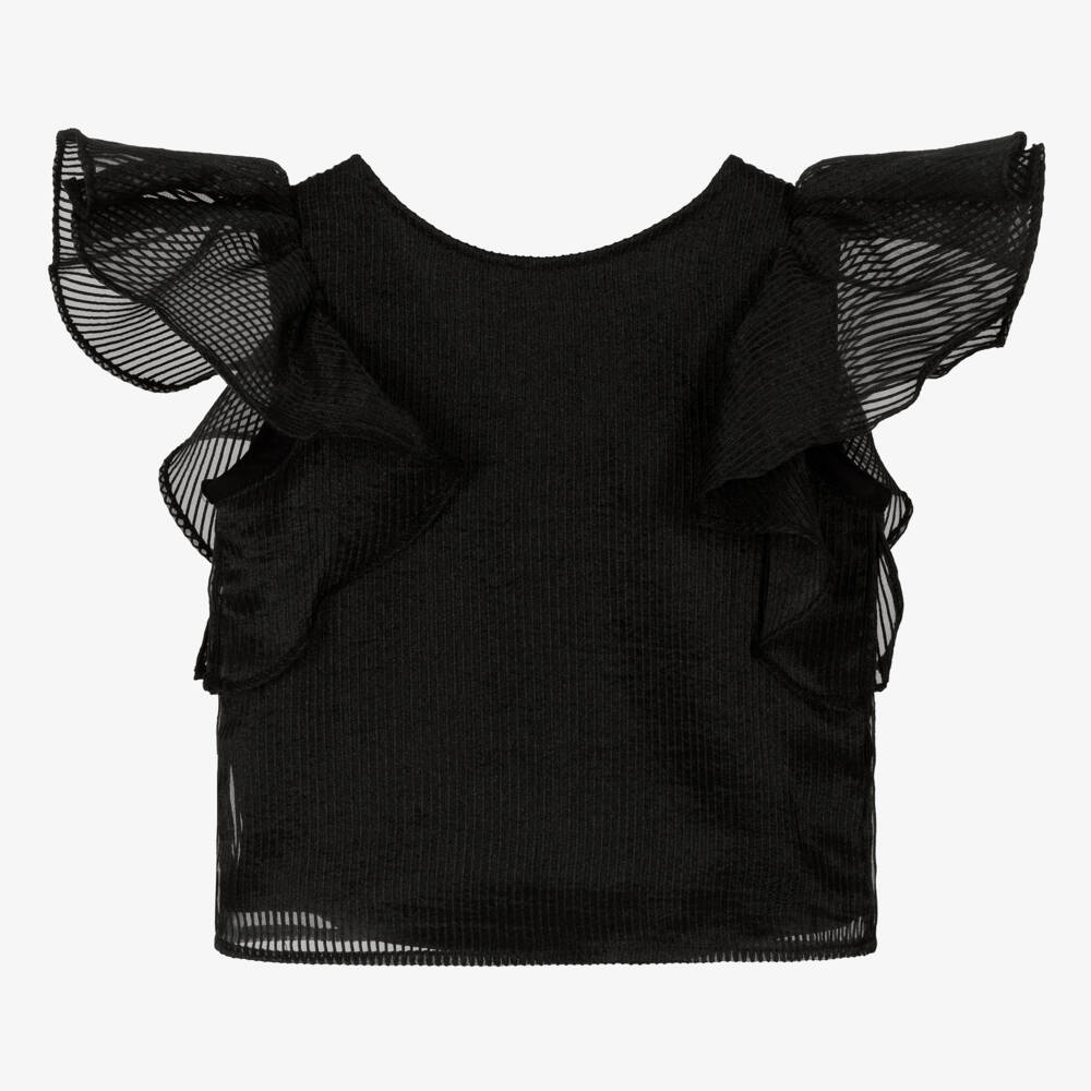 Girls Striped Black Organza Ruffle Blouse