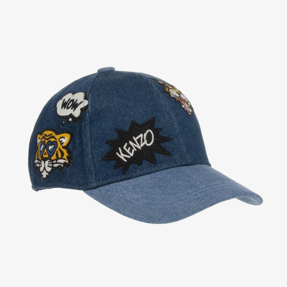 Super cool, this blue cap for boys and girls is by KENZO KIDS. Made from smooth cotton denim with a lightweight cotton lining, it is embroidered with iconic Tiger logo designs for a fun designer look. Complete with a structured peak, it has a tonal logo stitched on the back velcro strap fastening for an added branded touch.