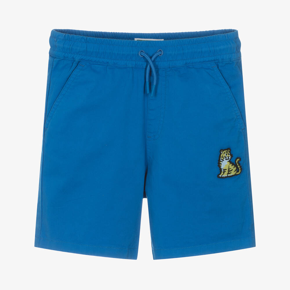 Boys Blue Cotton Twill Tiger Shorts