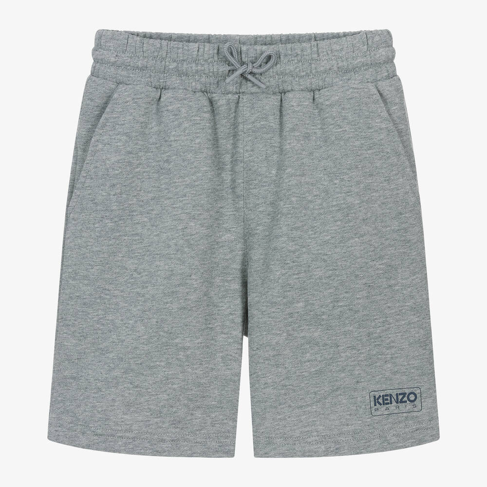 Boys grey marl shorts by KENZO KIDS, made in soft cotton jersey with a fleecy inside. Great for everyday casual wear, these comfortable shorts have slanted front pockets and a drawstring waistband to ensure a great fit. Adding that signature touch, the brand's iconic KENZO PARIS logo is printed on one leg in navy blue.
