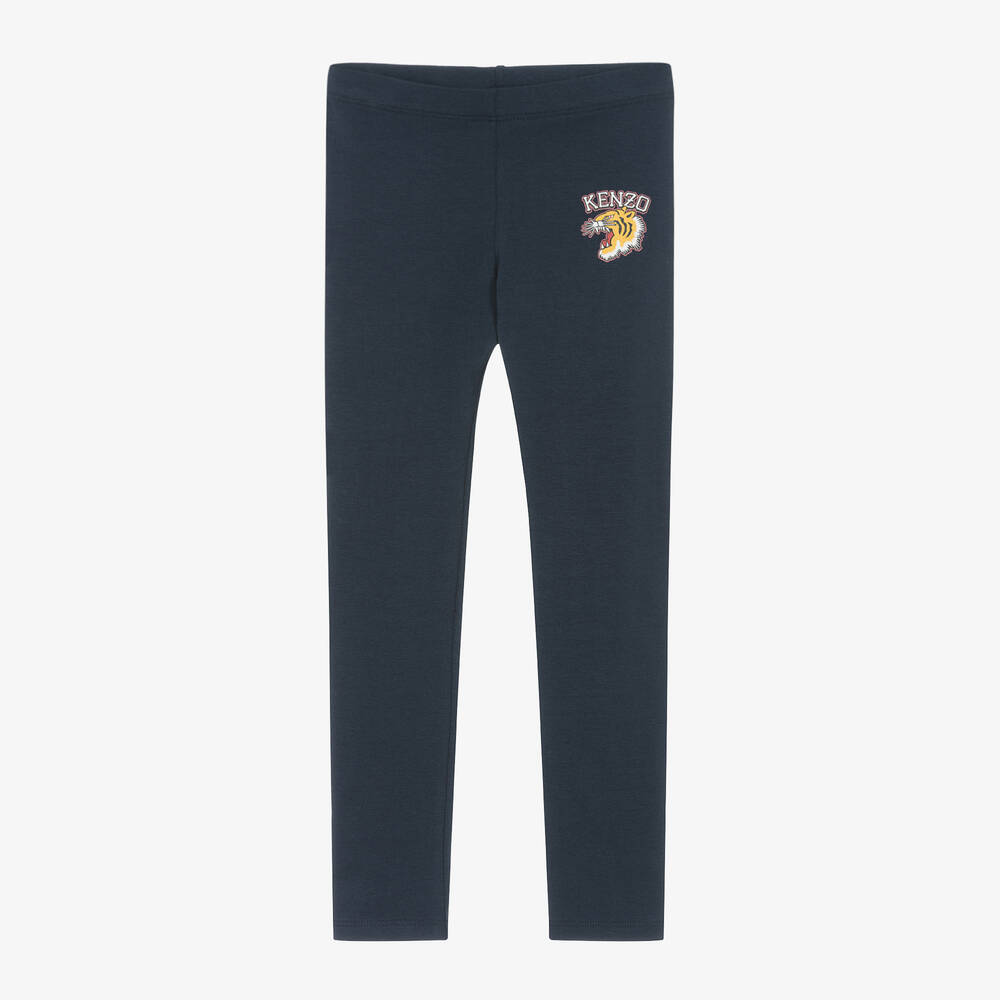 Navy blue leggings for girls by KENZO KIDS, made in soft organic cotton jersey. Printed with the iconic Varsity Tiger on one leg, this simple style has an elasticated waist for comfort.