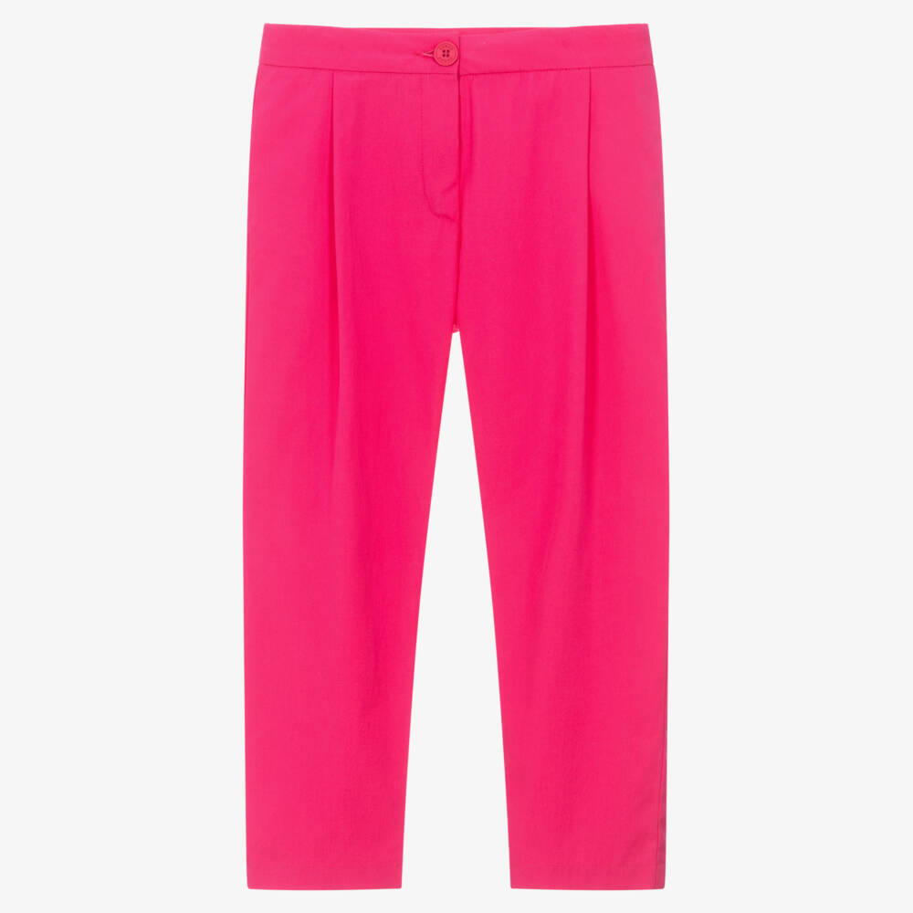 Girls Fuchsia Pink Cotton Poplin Trousers