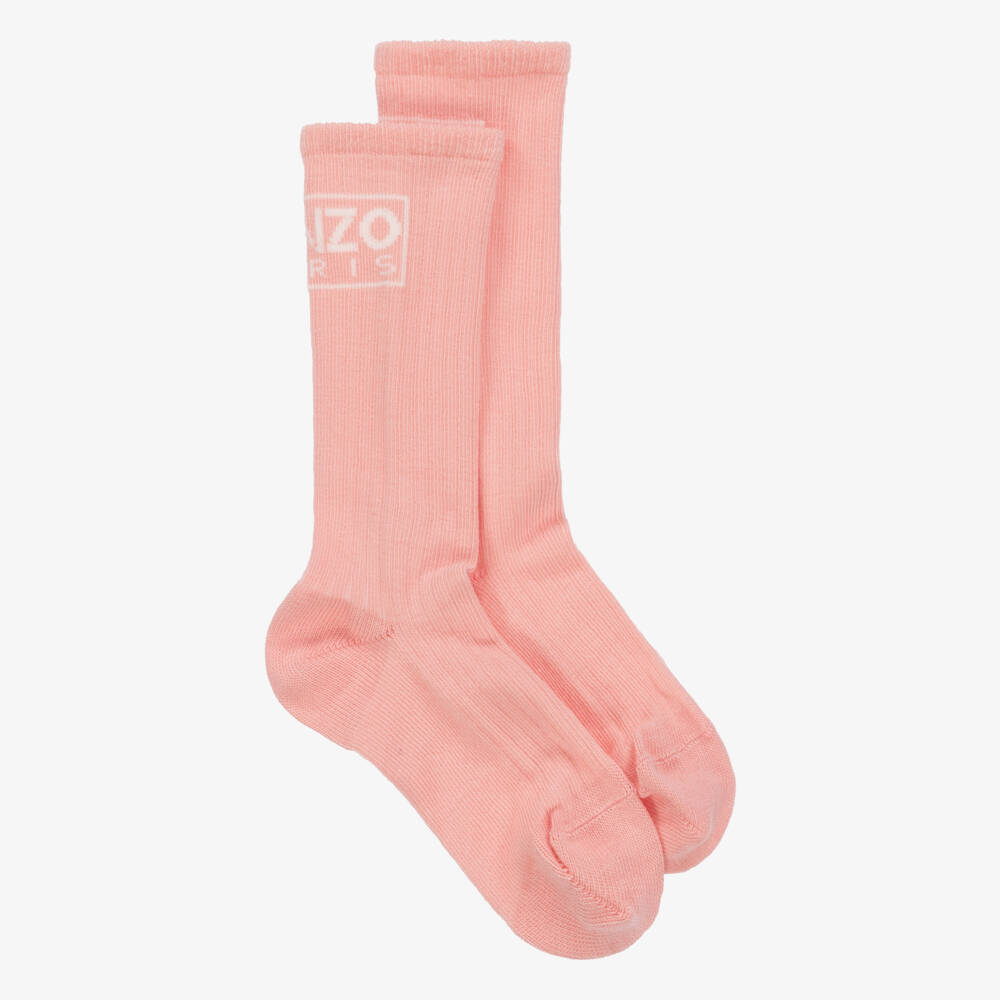 Pink long socks for girls by KENZO KIDS, with a white Kenzo Paris jacquard logo at the back. These stretchy ribbed socks are made in a soft and comfortable cotton-rich blend.