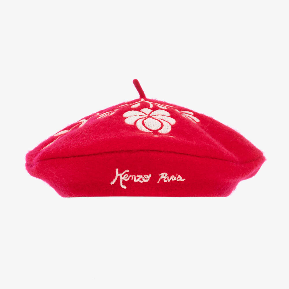French label KENZO KIDS has designed this cosy red beret for girls. It is woven in a soft, felted wool blend, with folk floral embroidery on the top in white. It has a silky lining and logo embroidery on the brim for extra designer appeal.