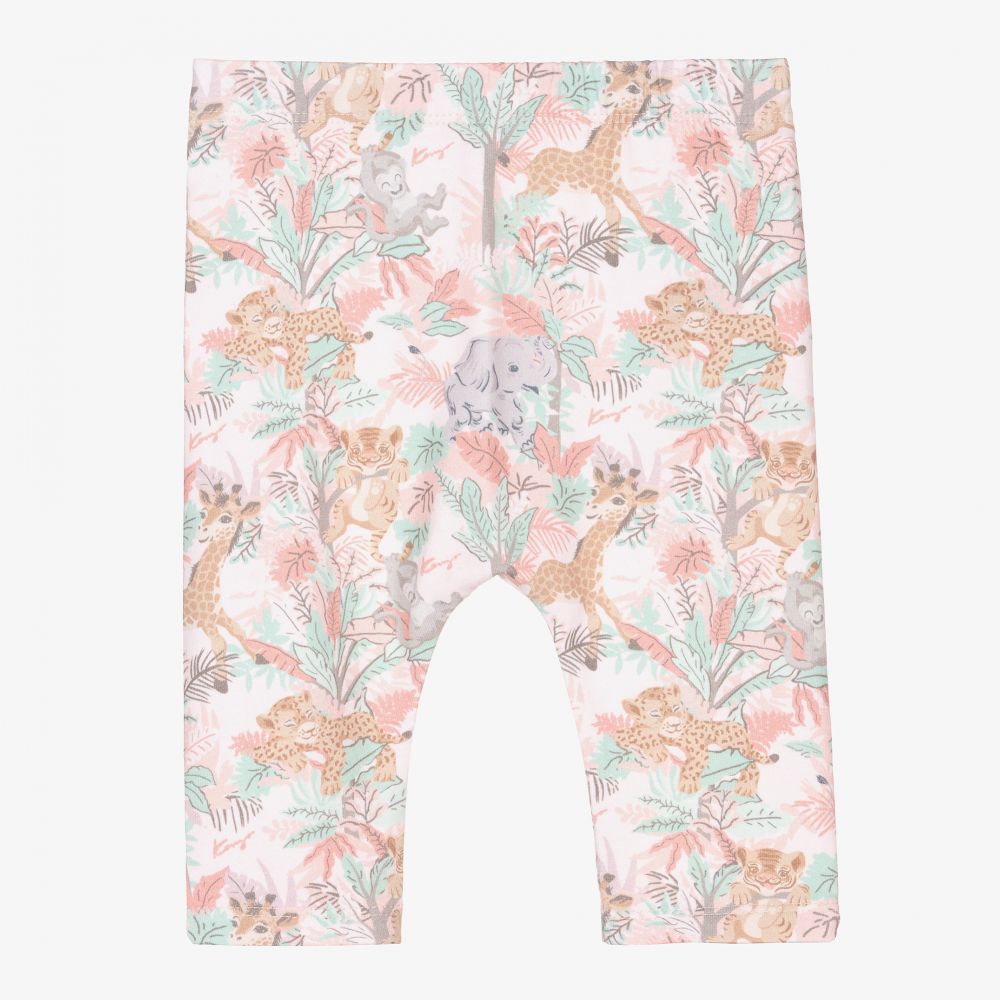 Baby girls pink leggings from luxury designer KENZO KIDS, with a colourful Mini Wild animal print. They are made in soft cotton jersey, with a comfortable elasticated waistband.