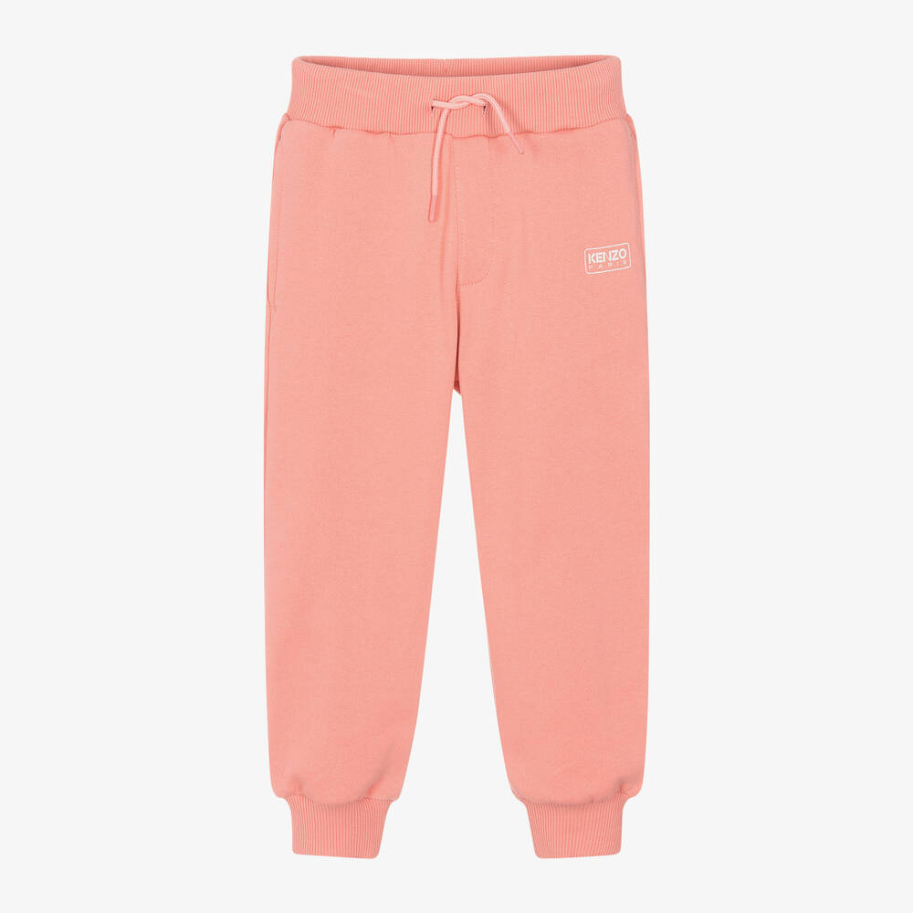 Pink joggers for girls by KENZO KIDS, made in comfortable organic cotton jersey with a soft, fleecy feel inside. Ideal for everyday casual wear, these cuffed joggers have useful side seam pockets, a patch pocket on the back and an elasticated, drawstring waistband for a great fit. Adding a signature touch, the brand's logo can be seen on the front in white.