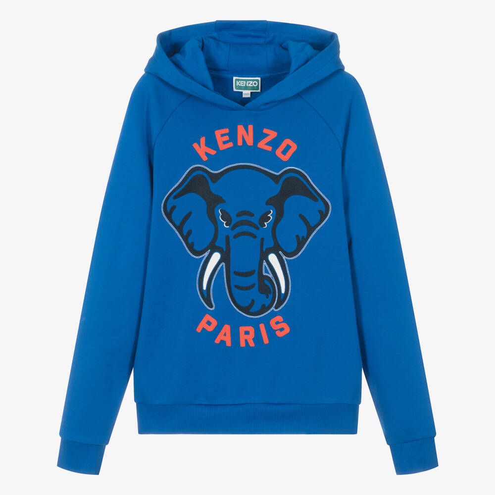 Casual and comfortable for teen boys, this cobalt blue hoodie is by luxury French fashion house KENZO KIDS. For instant brand recognition, the designer's iconic Elephant logo is embroidered on the front, together with their logo name in red. Ideal for relaxed days, it is made in mid-weight cotton jersey with long sleeves and cosy ribbed trims.