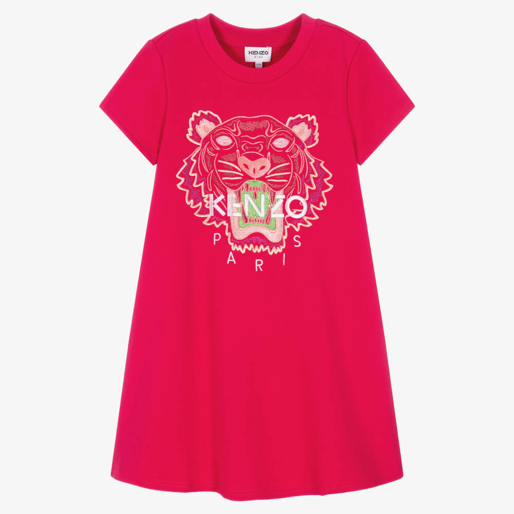 Simple and stylish for teen girls, this fuchsia pink dress from KENZO KIDS is made in cotton sweatshirt jersey. It features the luxury French brand's iconic Tiger logo on the front in pink, yellow and green embroidery, for a stand-out look. A comfortable T-shirt style, the dress has an A-line shape and comes with useful concealed side seam pockets.