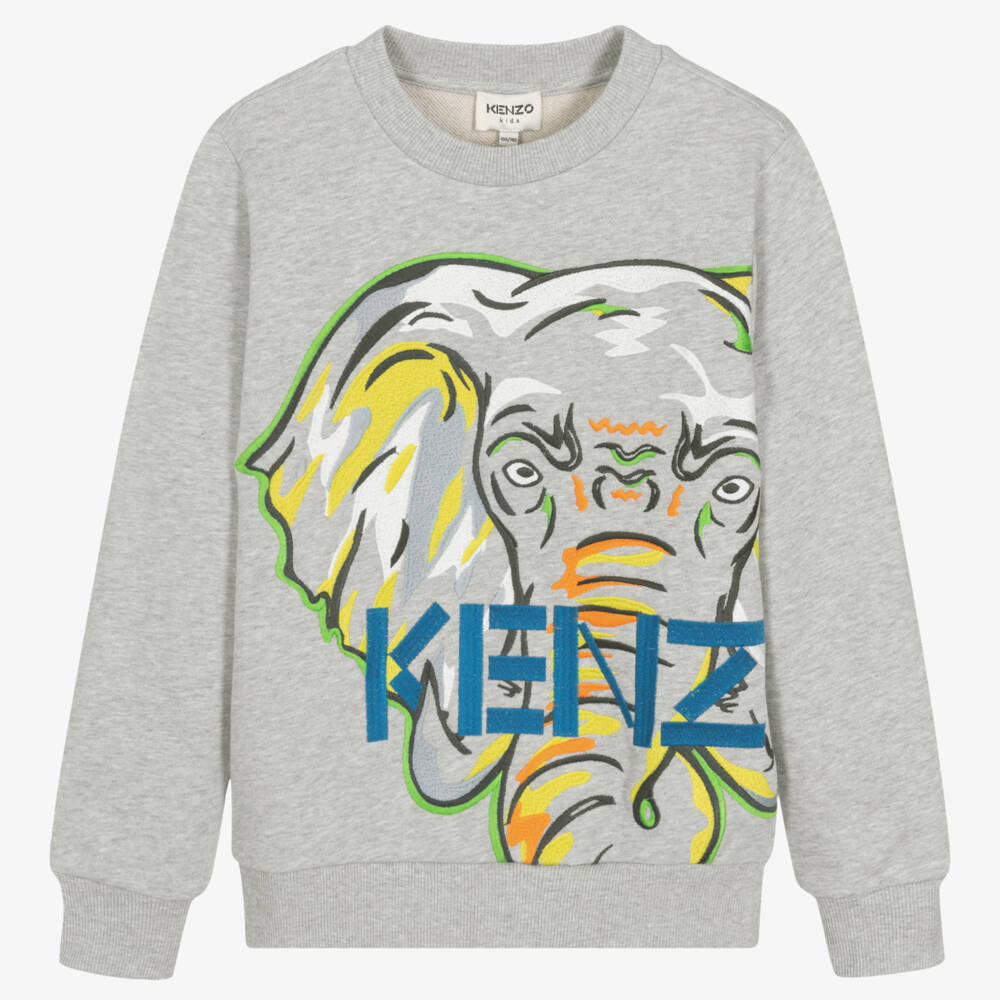 A grey marl sweatshirt for teen boys by KENZO KIDS. In shades of green, orange and blue, the French designer's cool Elephant logo is embroidered on the front. This comfortable top is made in soft, stretchy and medium-weight cotton.