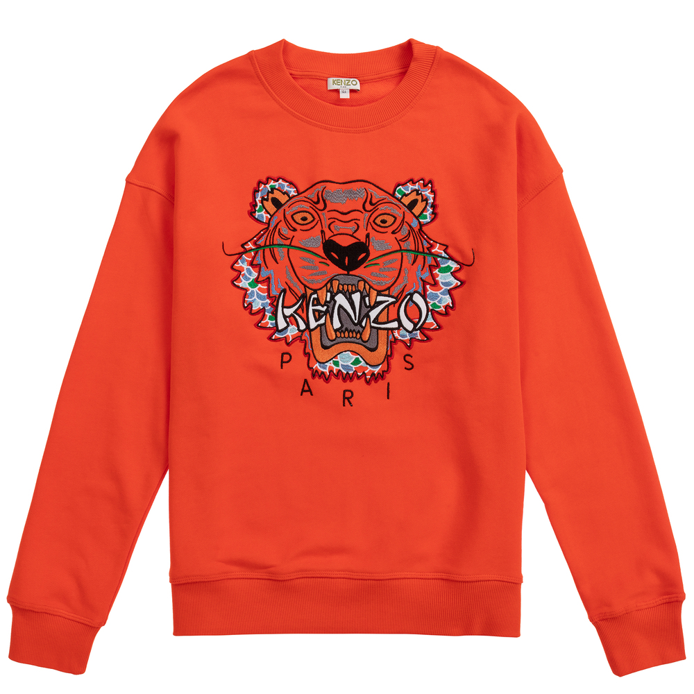 This orange Kenzo Kids sweatshirt has the iconic Tiger embroidery with a seasonal makeover of Japanese dragon details. It is made from soft cotton sweatshirt jersey.