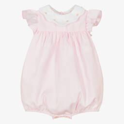 Baby boys yellow shortie by Kidiwi, handmade in light cotton poplin. It features a beautifully hand-smocked panel on the chest and a sailor-style collar. The shortie fastens with buttons on the back and between the legs for a neat finish.