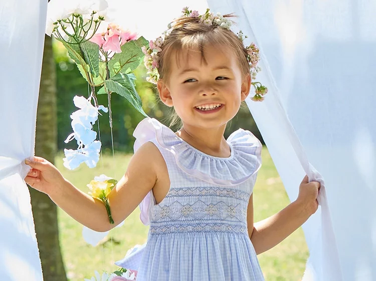 New SeasonKidiwiGirls Pale Blue Cotton Hand-Smocked Dress