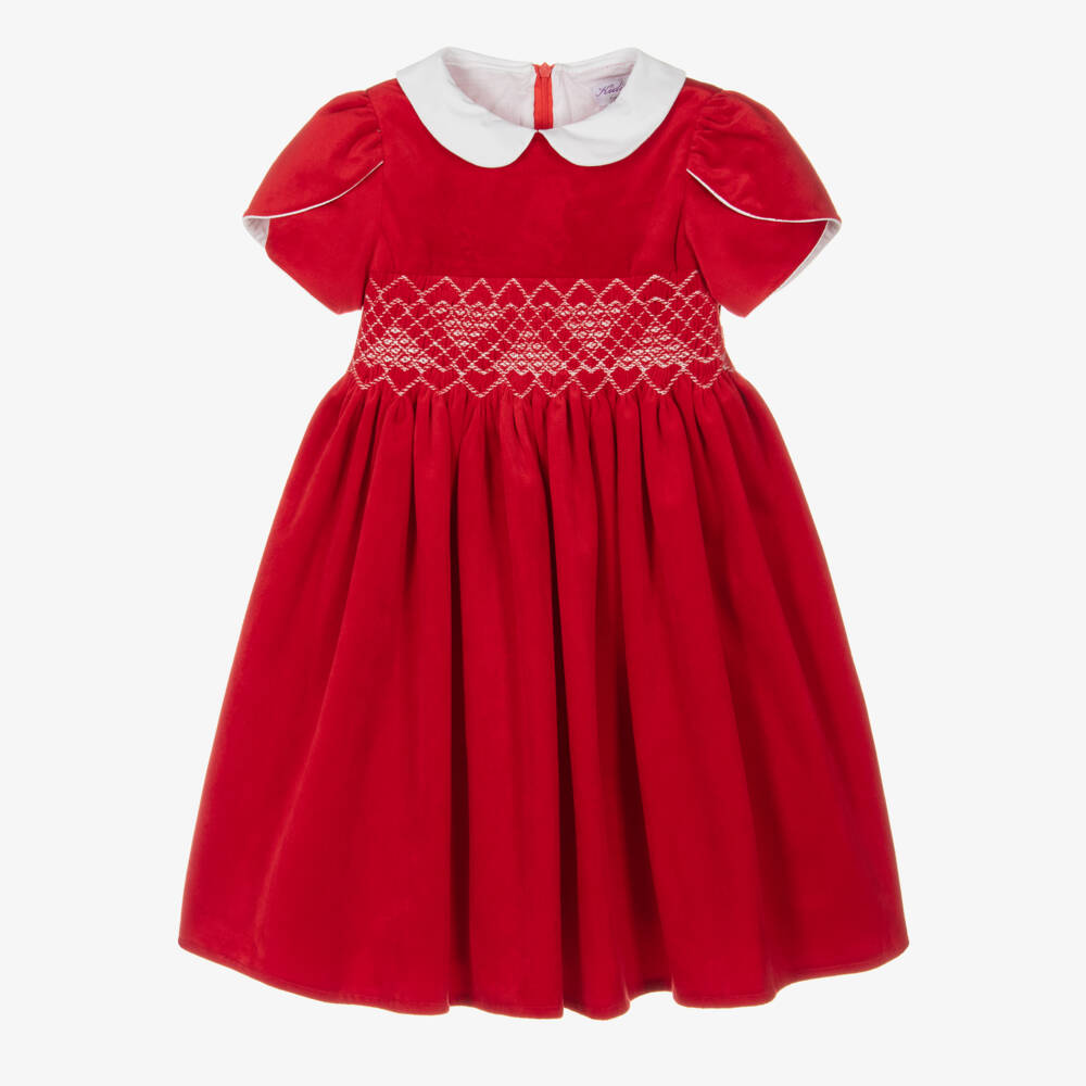 Girls Red Velvet Smocked Dress