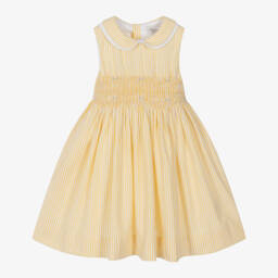 Sweet and charming, this red and white dress for girls by Kidiwi is handmade from smooth cotton poplin. Classically styled, the beautifully hand-smocked bodice has frilled short sleeves and gorgeous floral embroidery. There are lovely tie fastenings on the sides that can be used to cinch in the waist, enhancing the feminine look. Lined in lightweight cotton, it fastens with buttons on the back for a neat finish.