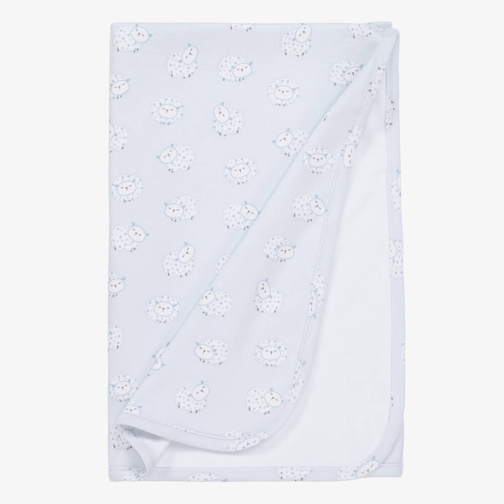 Printed with an adorable sheep pattern, this pale blue blanket for baby boys is by Kissy Kissy. Made from super soft Pima cotton jersey, this blanket is cosy, comfortable, and gentle against delicate skin.