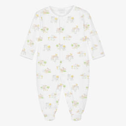 Girls White Pima Cotton Garden Bouquet Babygrow