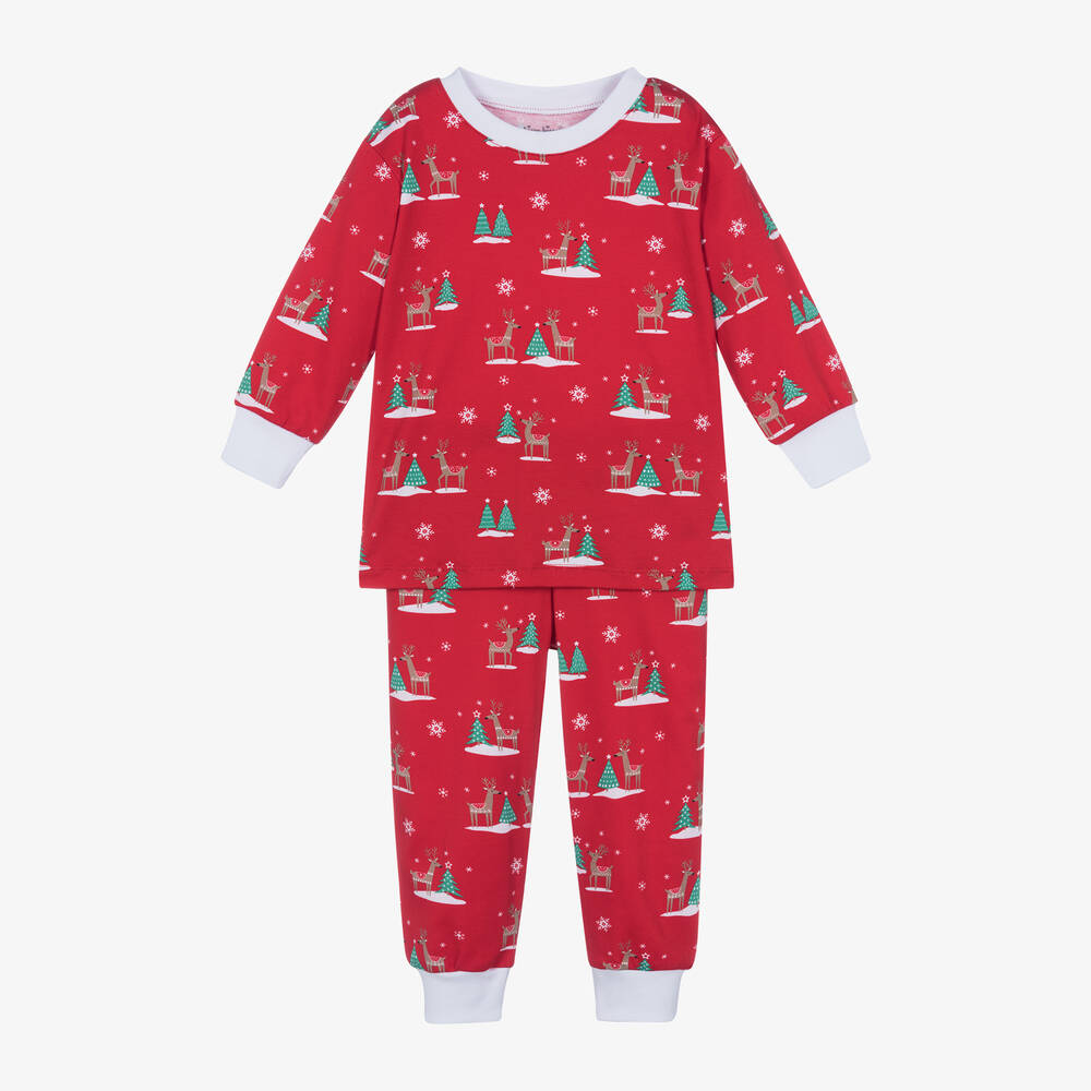 Red Pima Cotton Holiday Reindeer Pyjamas