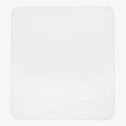 Baby boys and girls white blanket with scalloped trims from Kissy Kissy. It is made in a double layer of super soft Pima cotton jersey, and can also be used in the stroller or car seat.