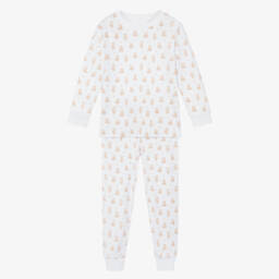 A white converter gown for baby boys and girls by Kissy Kissy, made in soft Pima cotton jersey for a gentle feel on delicate skin. Designed with an elasticated hem and popper fastenings, this versatile piece can be worn as a gown or romper. It has adorable beige teddy bears hand-embroidered on the front, delicate picot-embroidery trims and useful fold-over scratch mitts.