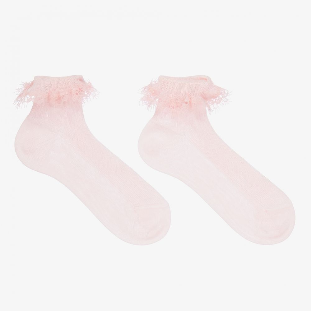 Pink socks for girls by La Perla, made in soft, lightweight cotton, with a pretty lace trim.