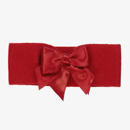 Younger girls red headband by La Perla. Knitted in soft wool for comfort and warmth, it is soft and stretchy and embellished with a satin bow in the centre.