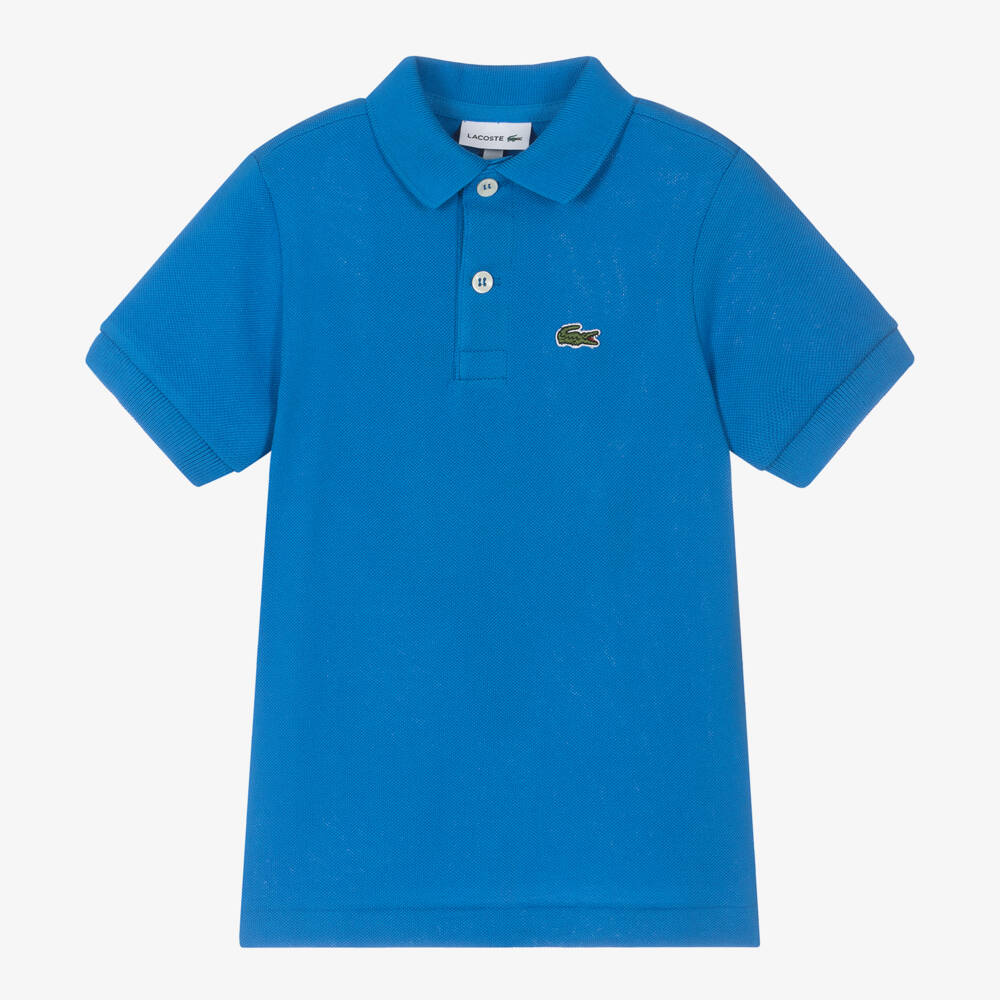 Classic royal blue polo shirt for boys and girls by Lacoste, with the brand's signature crocodile logo on the chest. Made in soft and stretchy cotton piqué with a ribbed collar and cuffs, it has button fastenings on the front for a simple style.