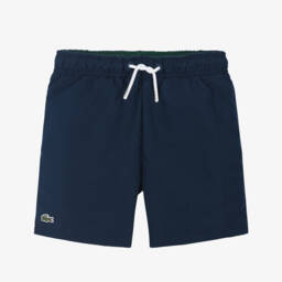 Royal blue swim shorts for boys by Lacoste, ideal for warm days by the pool or beach. Made in soft, silky, recycled fabric, they have a comfortable, drawstring waistband for a great fit and useful side pockets. A signature embroidered crocodile logo patch on one leg provides instant brand identity.