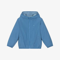 Green hooded jacket for boys and girls by Lacoste, featuring a contrasting green band across the chest and sporty branded tape along the sleeves. Lightweight and durable with a soft mesh lining for comfort, it has useful front pockets and a signature crocodile logo for instant brand appeal.