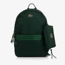Pale pink backpack for boys and girls by Lacoste, featuring the signature crocodile logo and bold branding for instant designer appeal. Stylish and practical, it is made in durable canvas with secure zip fastenings on both the main compartment and front pocket. It has a padded mesh back panel and adjustable shoulder straps for comfort, and a convenient carry handle on the top.